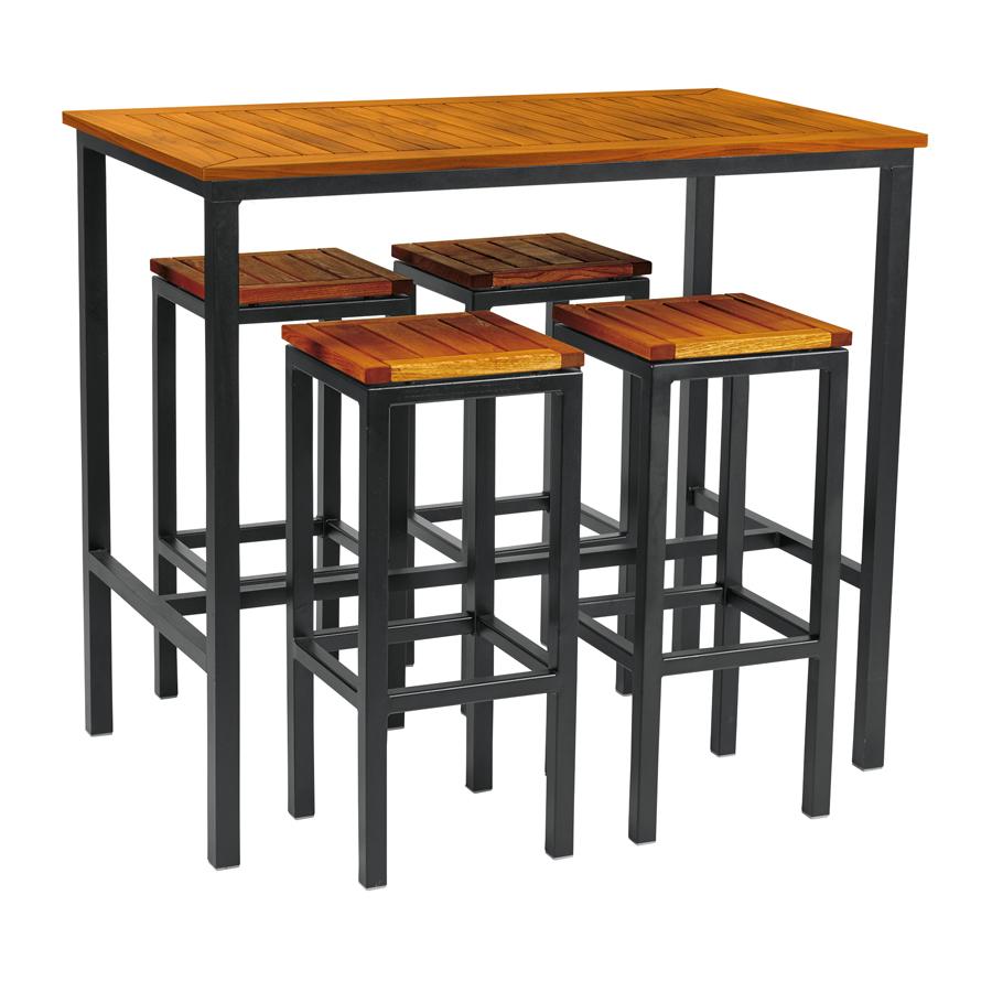 Base powder coated black for outdoor use, complete with Insignia Robinia wood top. May also be used internally if required